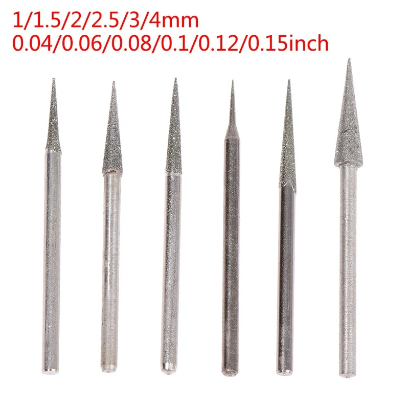 Introducing the 6Pcs 1-4mm Diamond Grinding Head Needle Bits Burrs Engraving Carving Tool, designed for precision grinding and engraving tasks. These tools are perfect for use with electric grinders and carving machines, making them ideal for working with hard materials such as glass and jade.