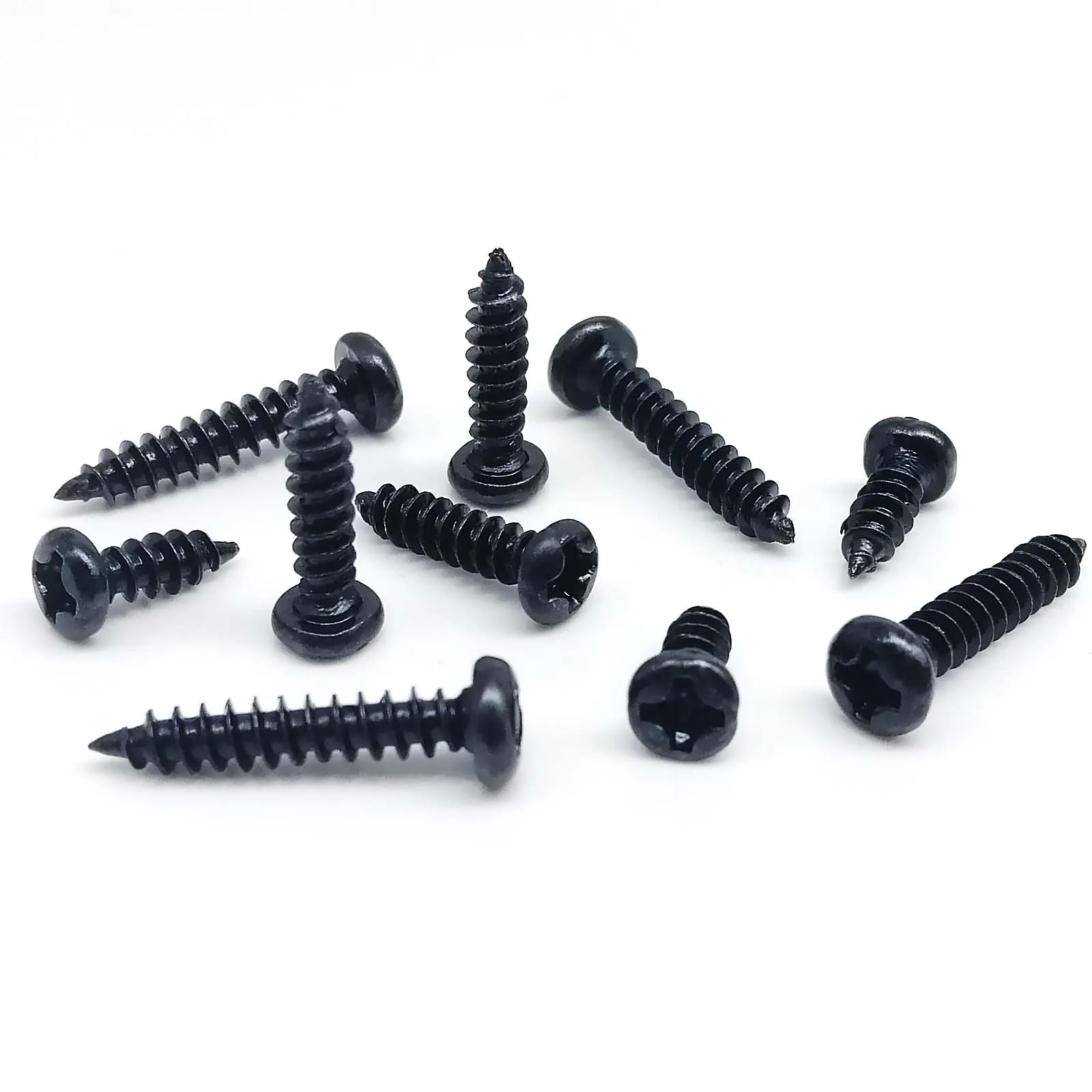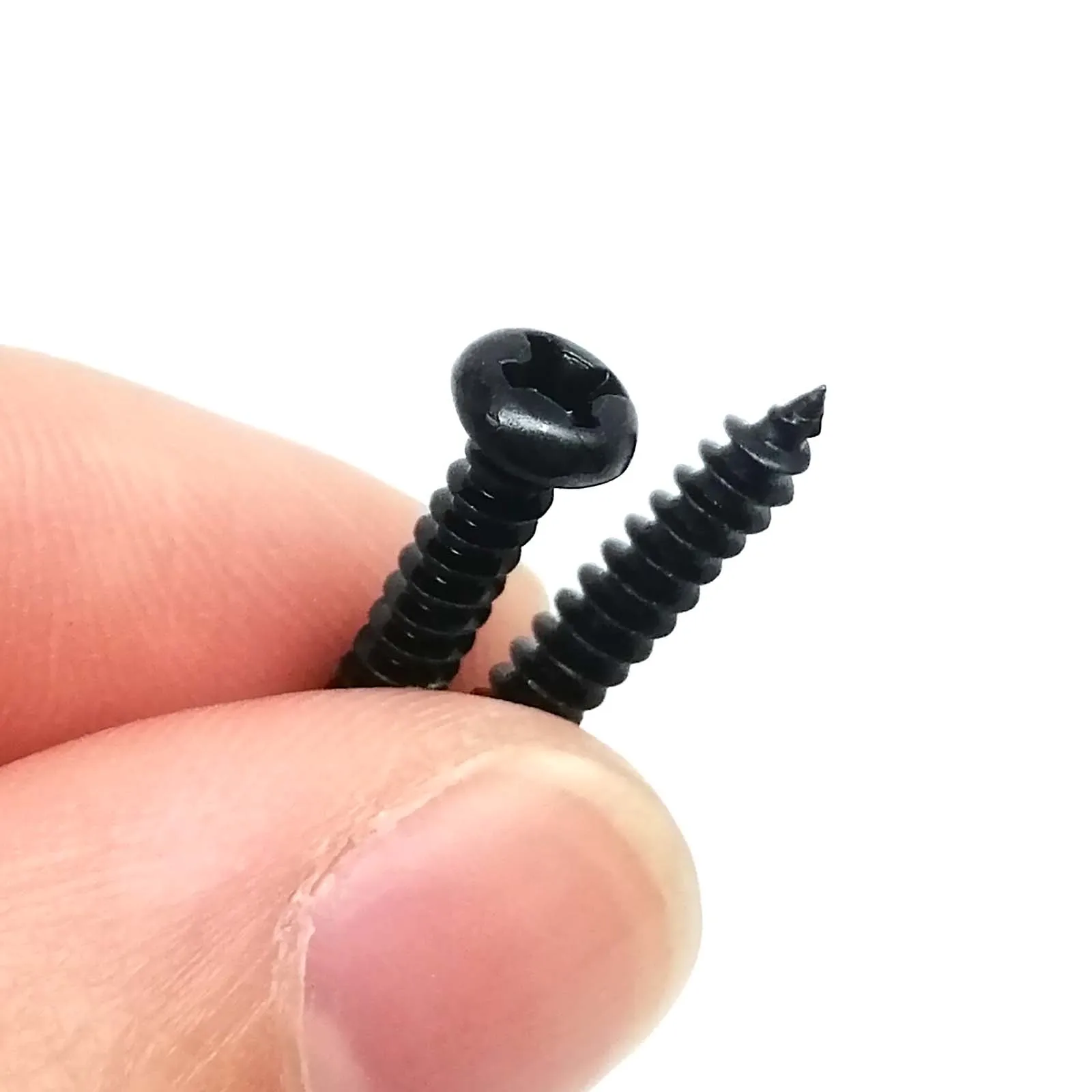 - 1 x Set of black steel mini micro cross Phillips round pan head self-tapping wood screws (quantity varies by set)