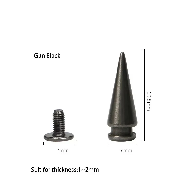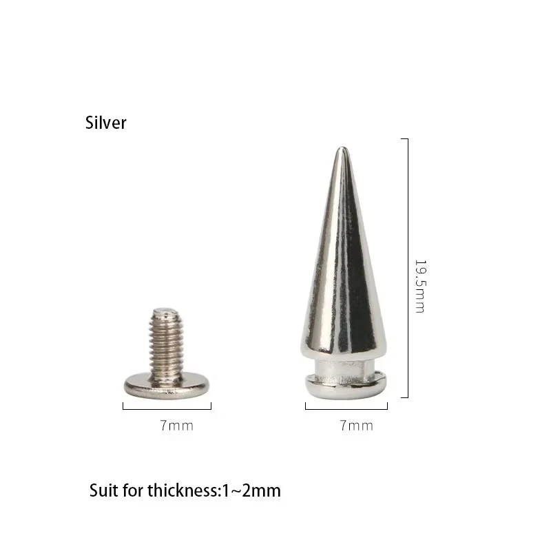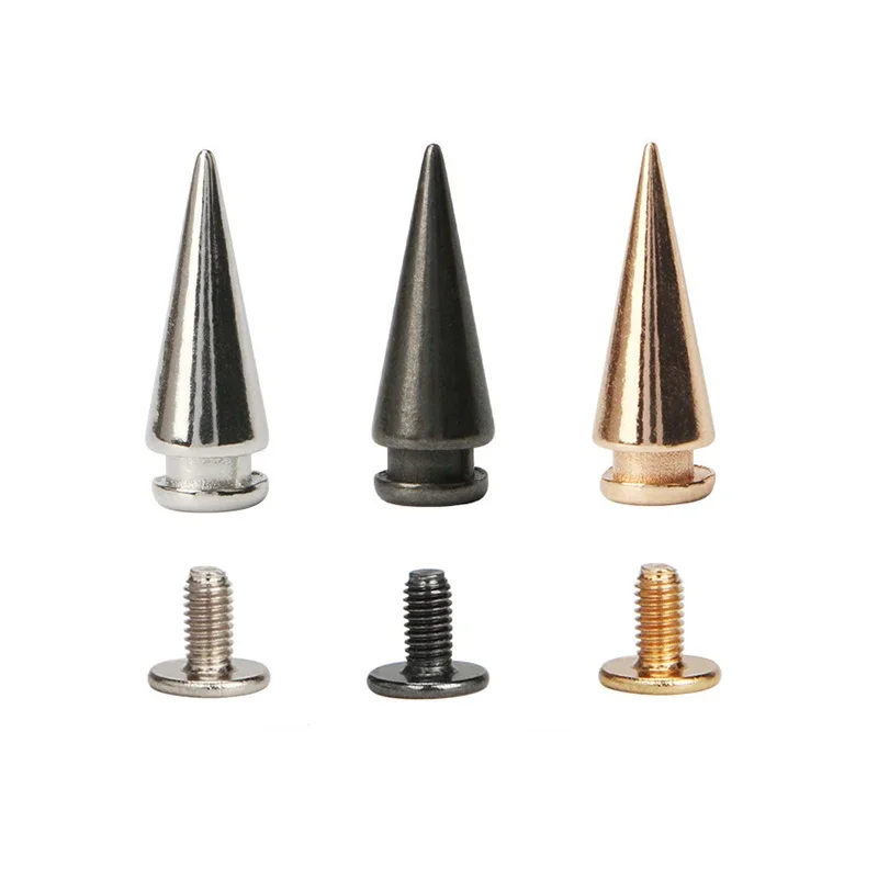 These 7*20mm Zinc Alloy Tower Type Punk Spike Cone Spots Studs are perfect for adding a bold touch to your leathercraft projects. Each set includes screws for easy application, making them ideal for various DIY projects such as punk apparel, bags, and accessories.