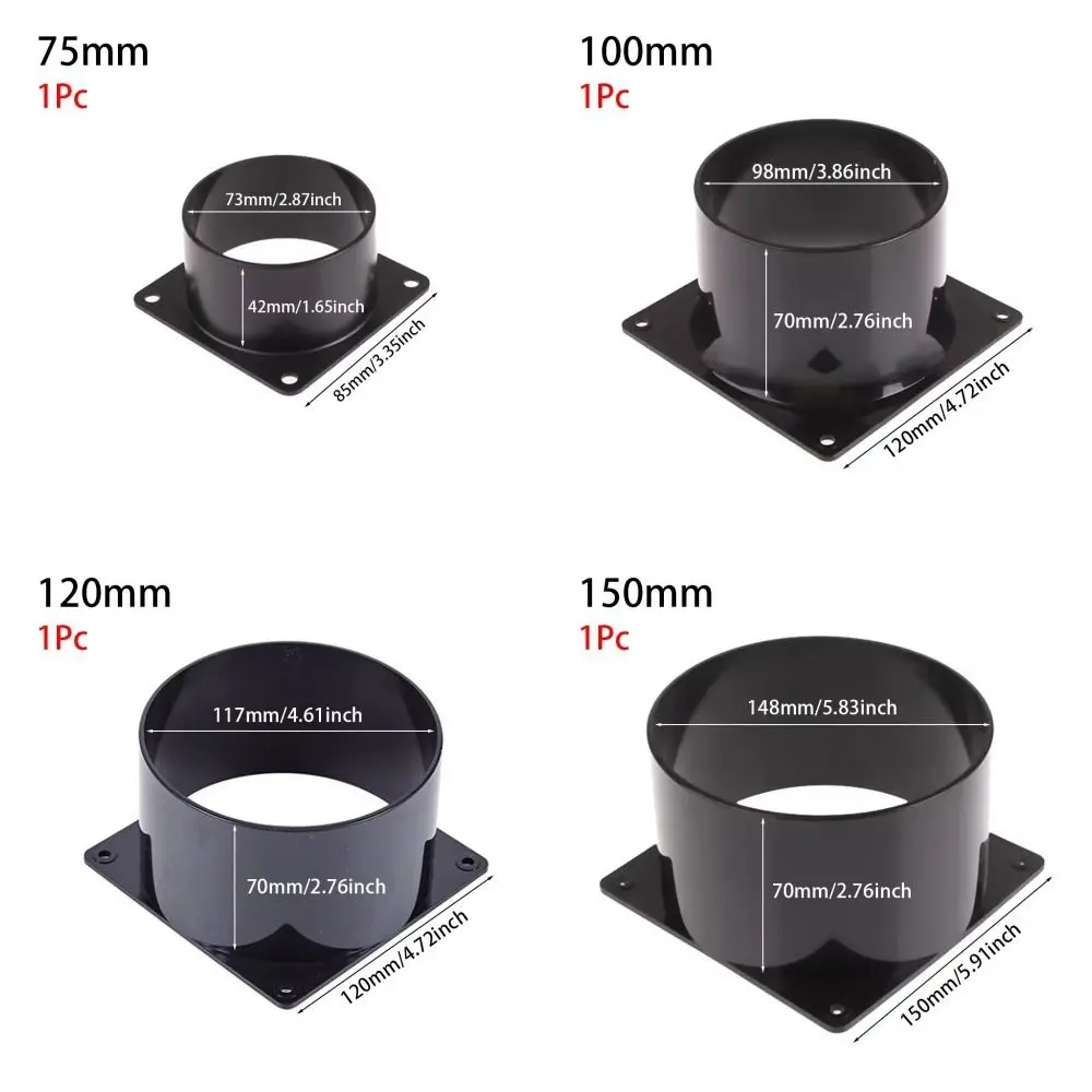 75MM 100MM 120MM 150MM Black Flange Connector Square Bottom Straight Flange Air Inlet Outlet Ducting Connection