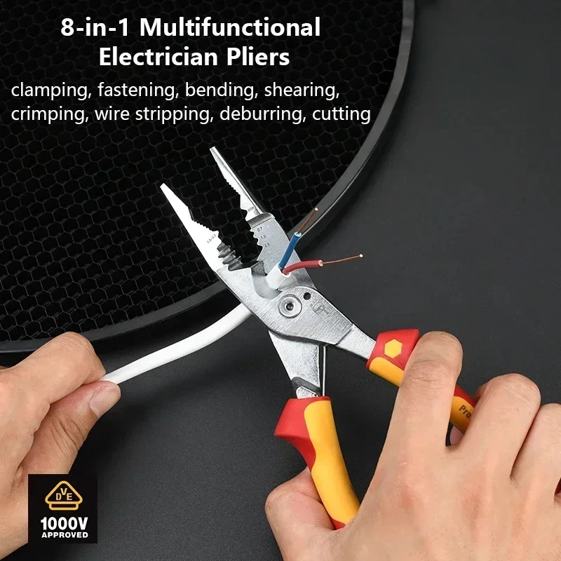 8 in 1 Insulated Pliers 1000V VDE Snip Nose Wire Stripping Plier Multifunctional Electrician Hand Tool Pliers