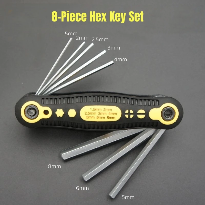 This 8pcs Portable Folding Hex Wrench Allen Set is designed for convenience and efficiency in bicycle repair and other applications. The set includes a range of sizes from 1.5mm to 8mm, making it versatile for various tasks.