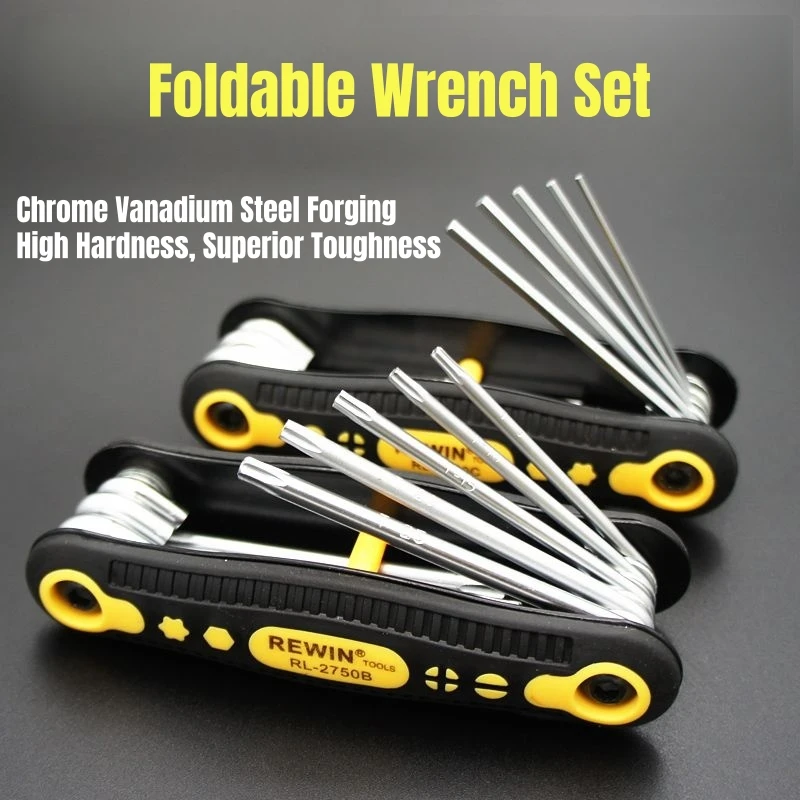 8pcs Portable Folding Hex Wrench Allen Set Metric System Torx Hexagonal Spanner