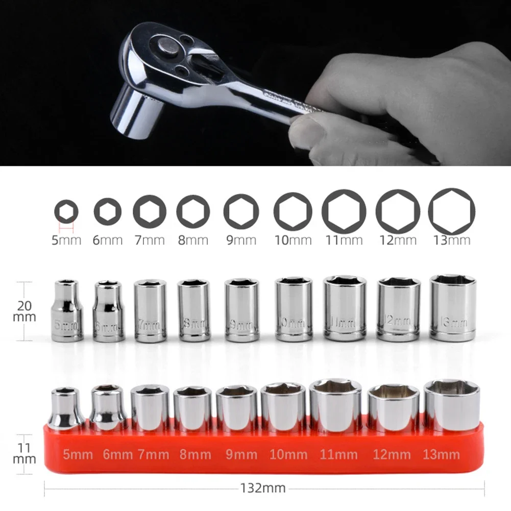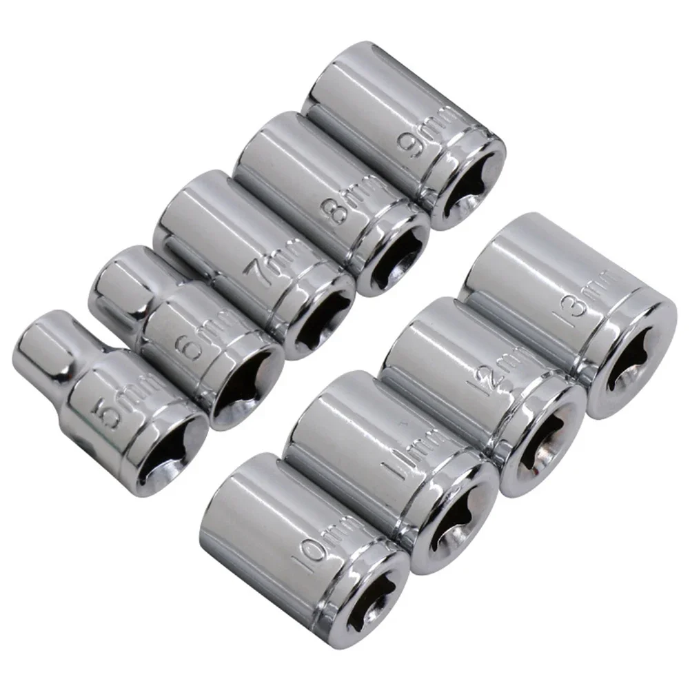 9 Pcs Hex Sockets 1/4 Inch Drive 5-13mm Metric Sockets Wrench Set