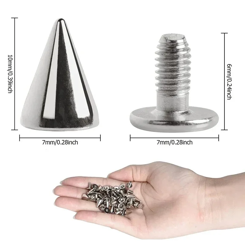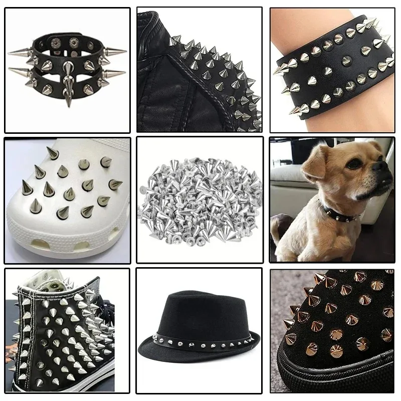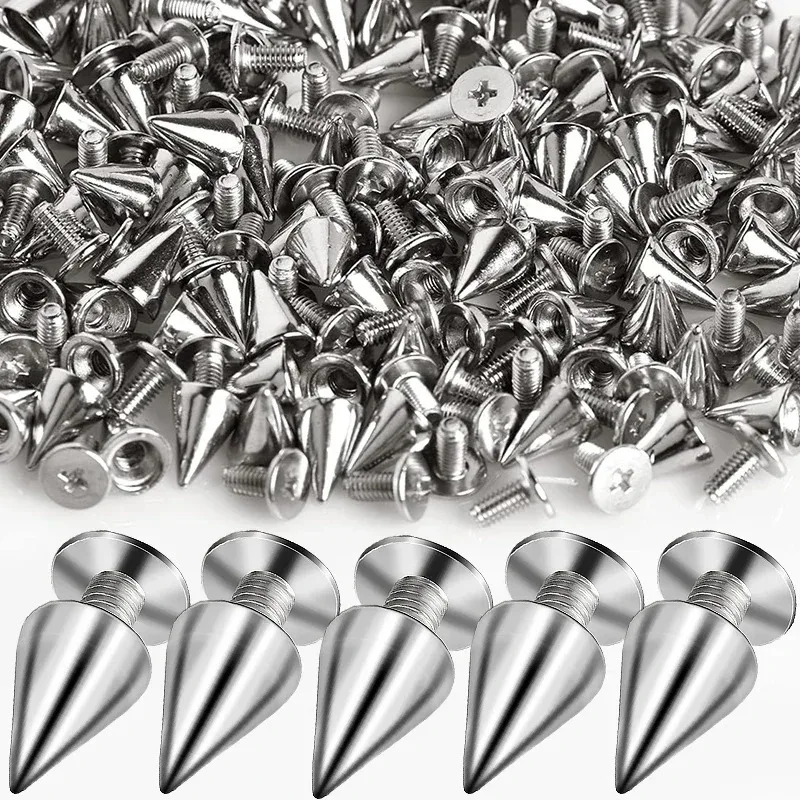 Enhance your DIY projects with these stylish cone-shaped spikes. Perfect for adding a punk rock flair to clothing, bags, shoes, and more, these rivets are a must-have for any creative enthusiast.