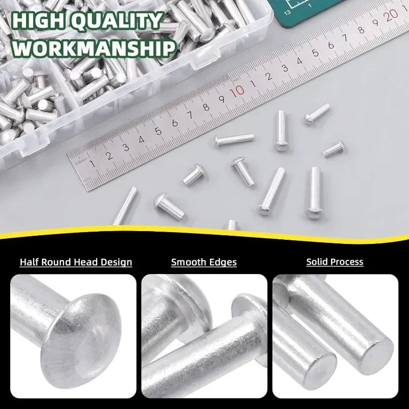 These aluminum alloy rivets are designed for various applications including furniture, cabinets, doors, windows, concrete, and wood. They provide a reliable fastening solution for your projects.