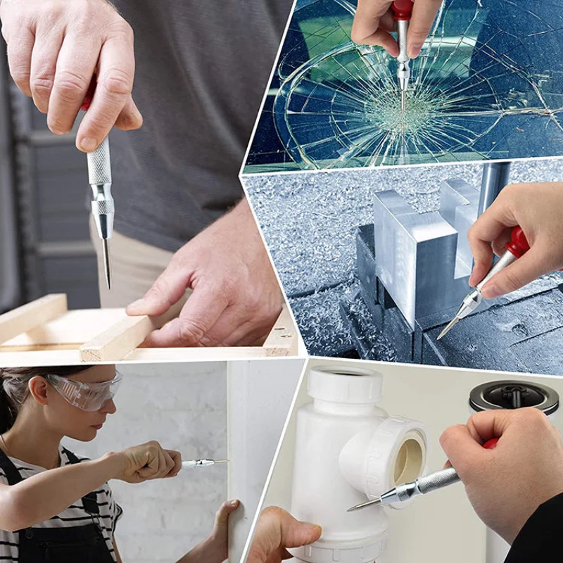 This Automatic Center Punch is an essential tool for precise positioning before drilling, making it ideal for various applications such as emergency escape and window breaking. The tool utilizes a spring-loaded mechanism to create an impact force, ensuring accurate and effective punching.