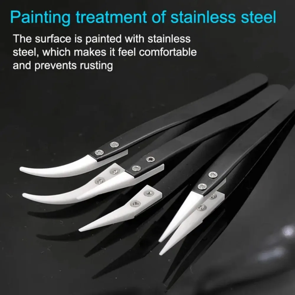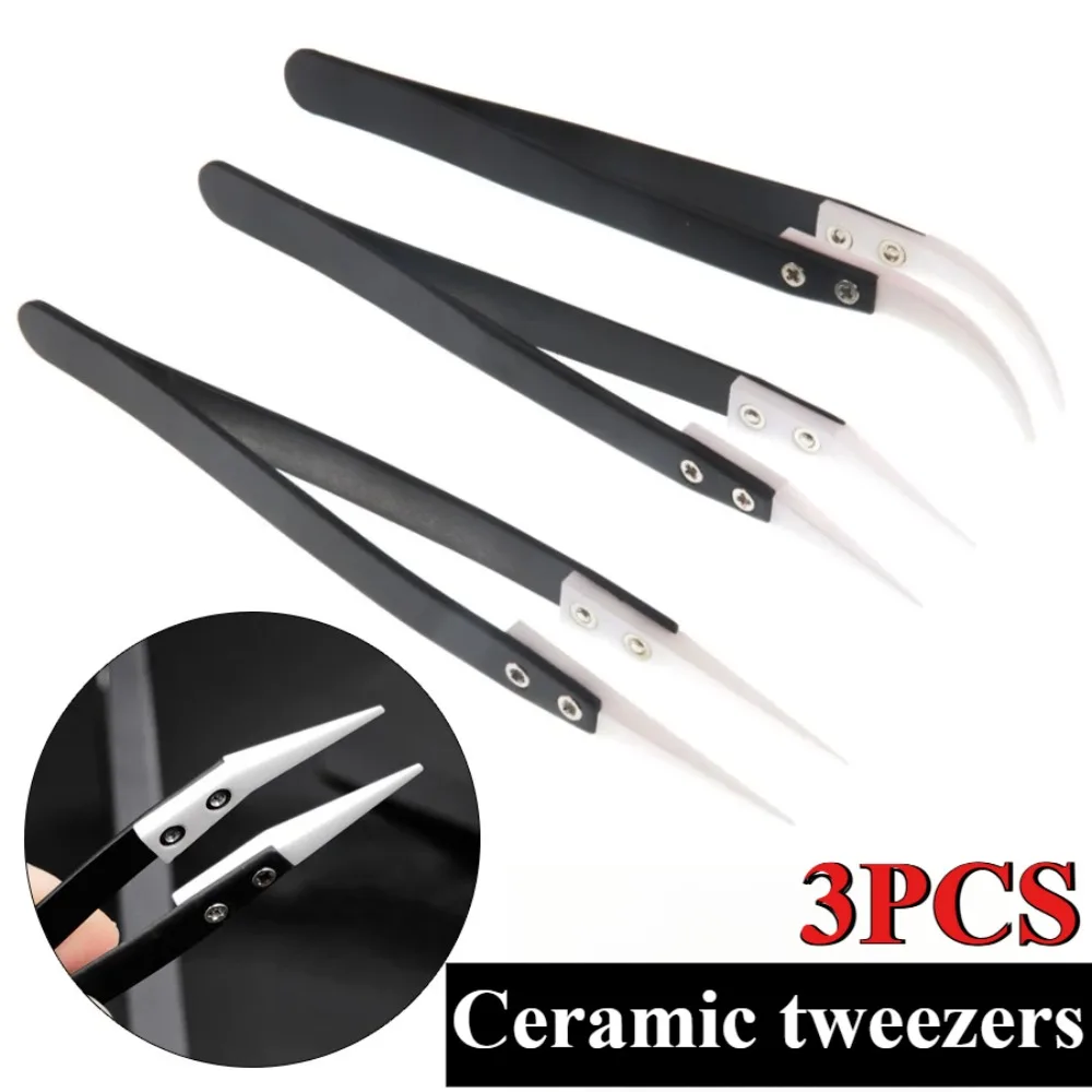 - 1 set of 3pcs Stainless Steel Ceramic Tweezers.