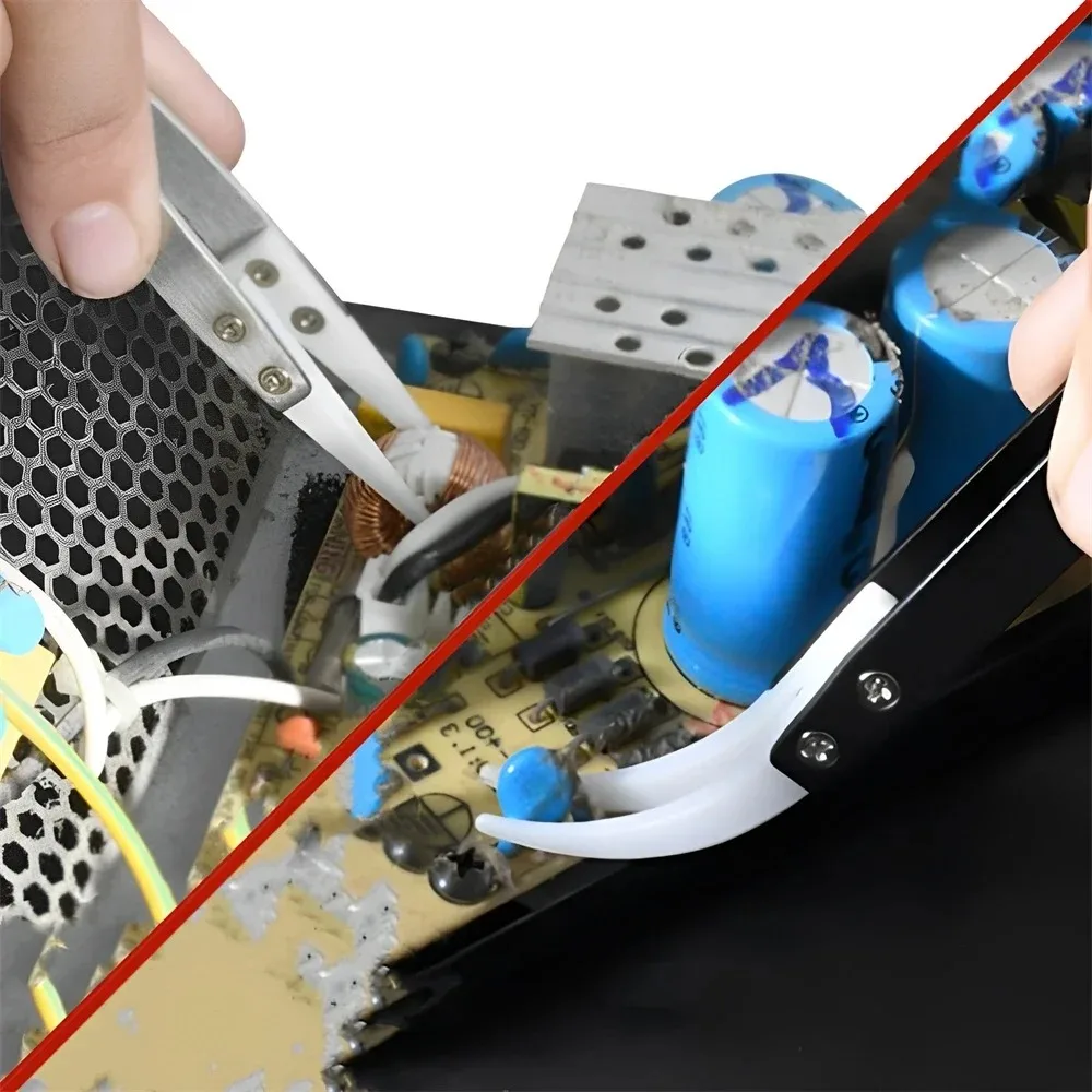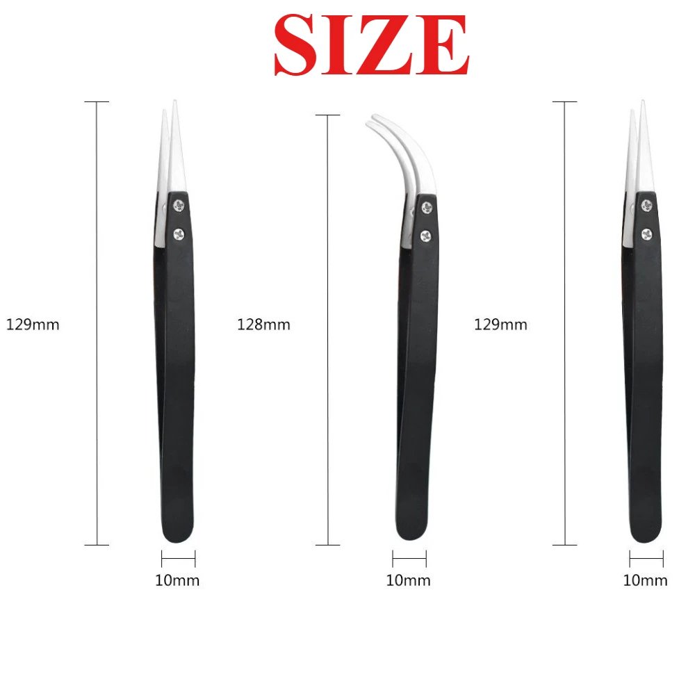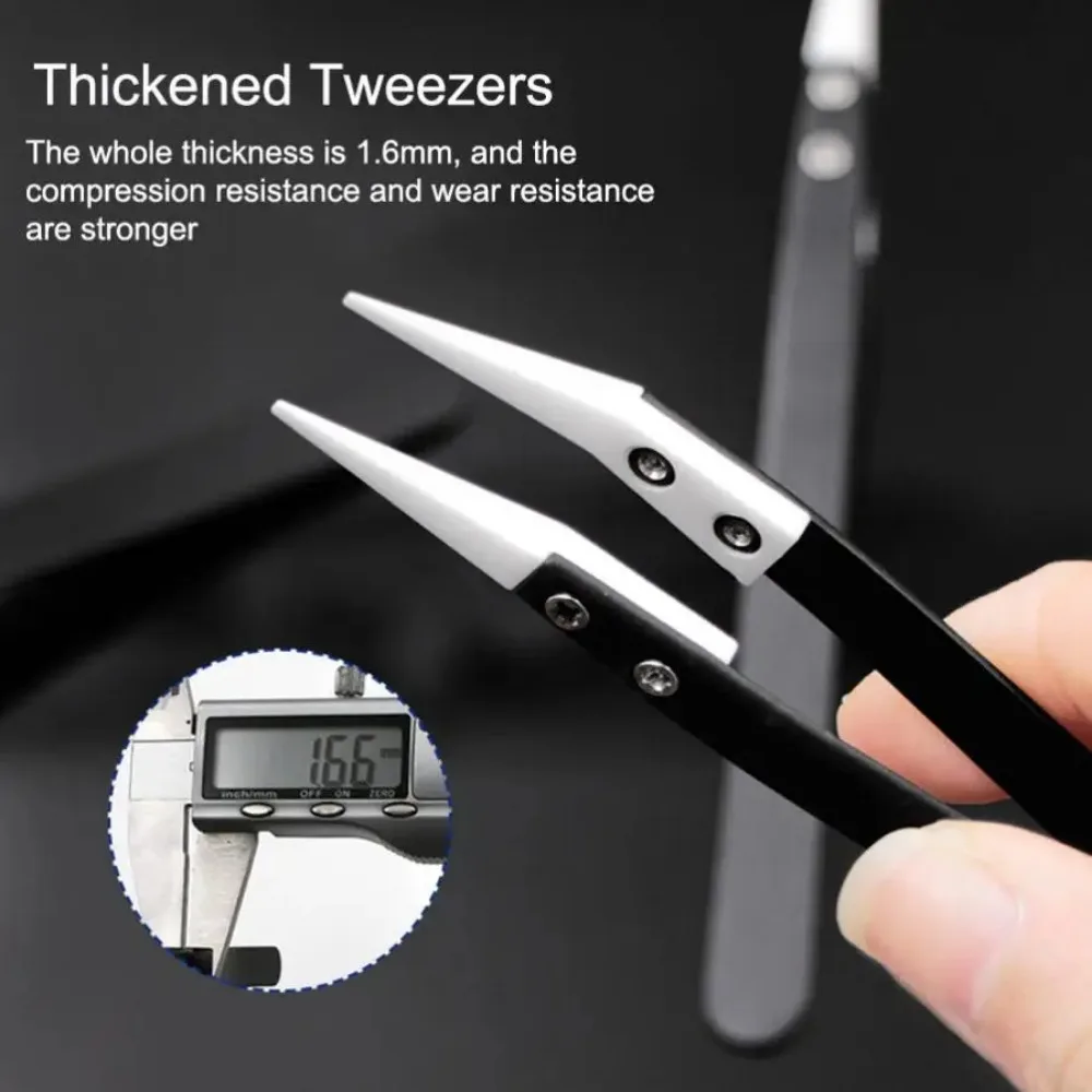 Black Handle Ceramic Stainless Steel Tweezers Straight & Curved Pointed Tip Acid and Alkali Resistant Insulation Clamping Tools