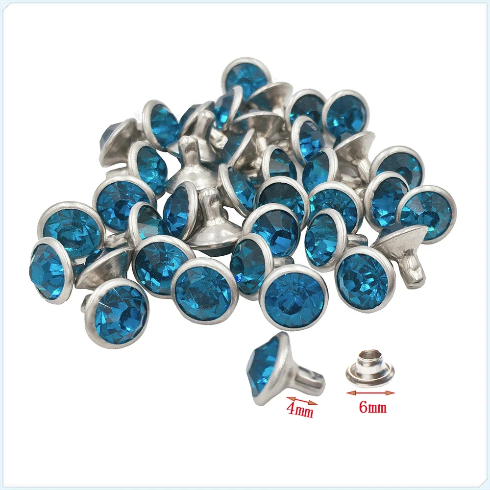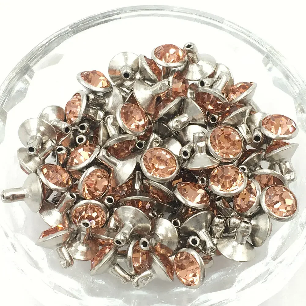Crystals Glass Rhinestone Rivets Diamond Studs Rapid Rivets for Leather Craft DIY are perfect for adding a touch of elegance to your leather projects. This set includes 100 pieces in sizes of 6mm and 8mm, making them versatile for various applications such as belts, handbags, and more.