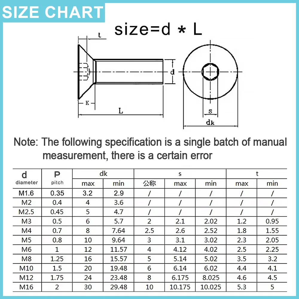 • Dimensions: Available sizes include M2, M2.5, M3, M4, M5, M6, M8, M10, M12