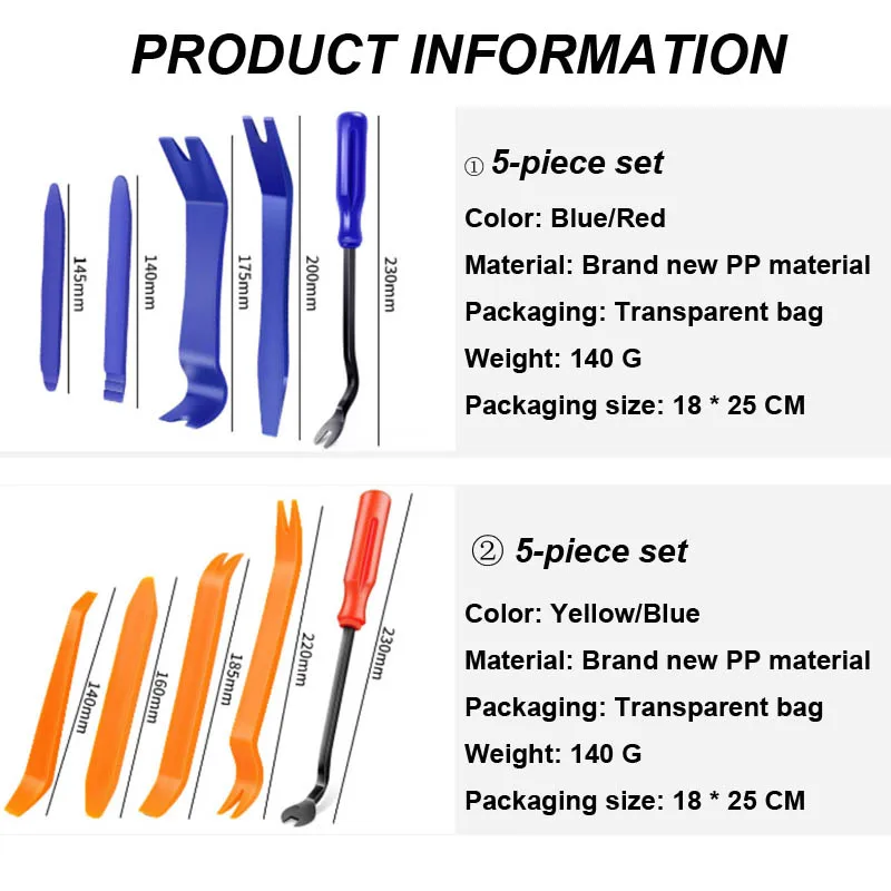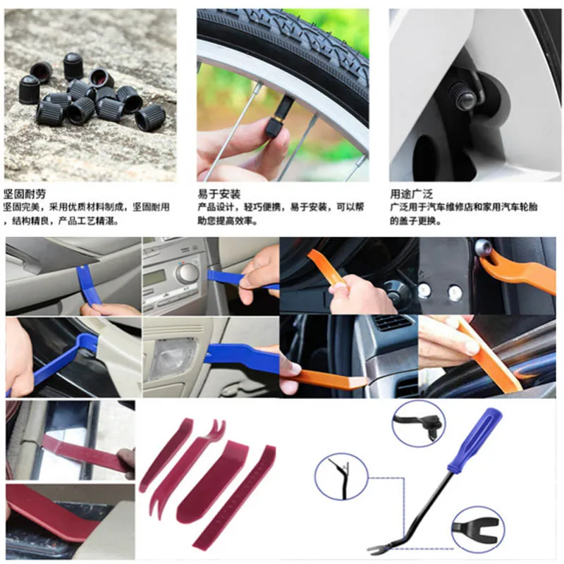 This automotive interior disassembly tool kit is designed for efficient and effective car repairs. It includes a variety of tools to assist in the removal and installation of car panels, audio systems, and other interior components.