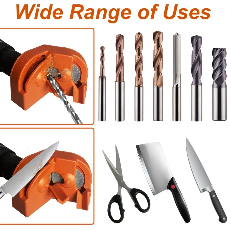 This professional drill bit sharpener is designed for all types of drill bits, making it an essential tool for both home and professional use. It enhances drilling performance and is versatile enough to sharpen kitchen knives and other cutting tools.