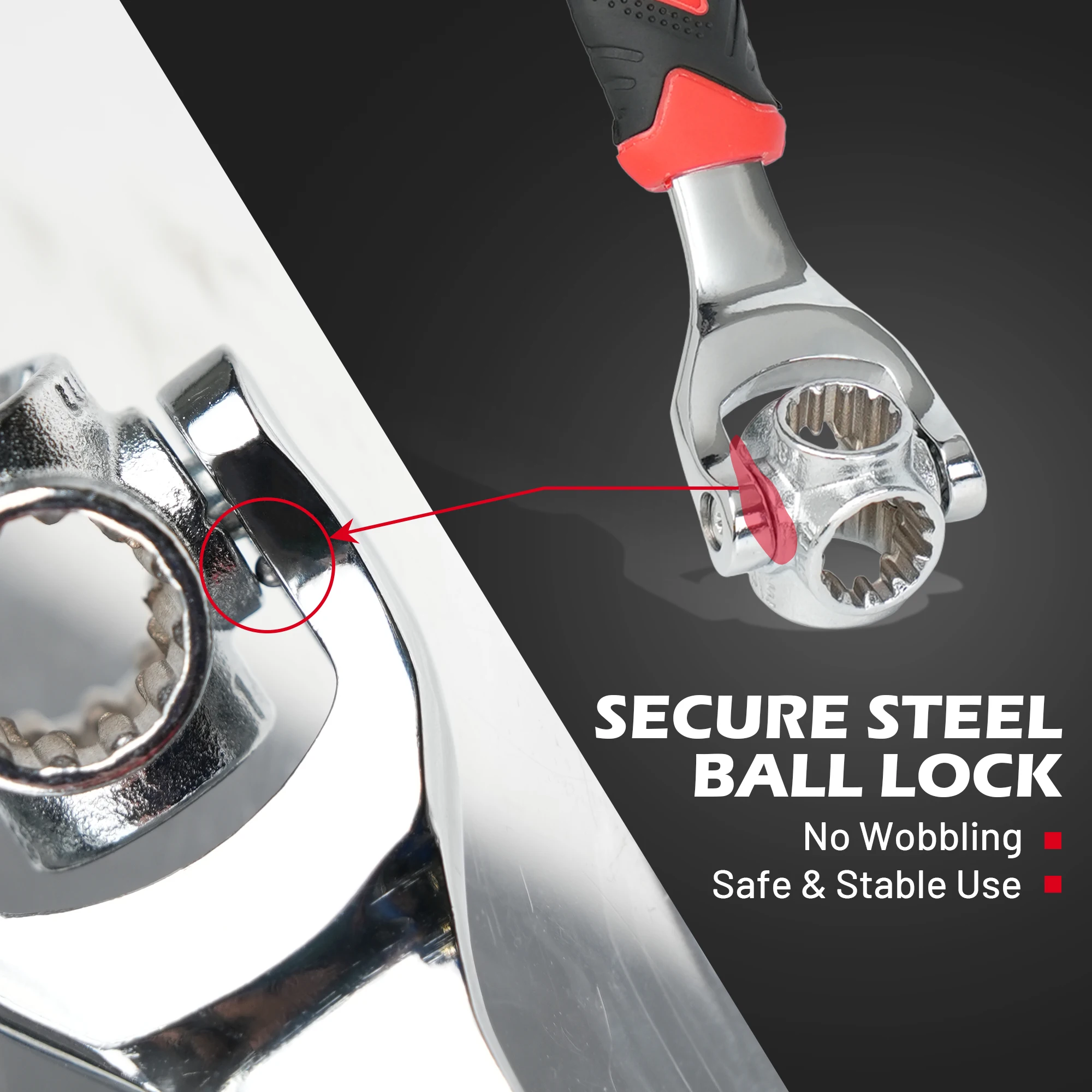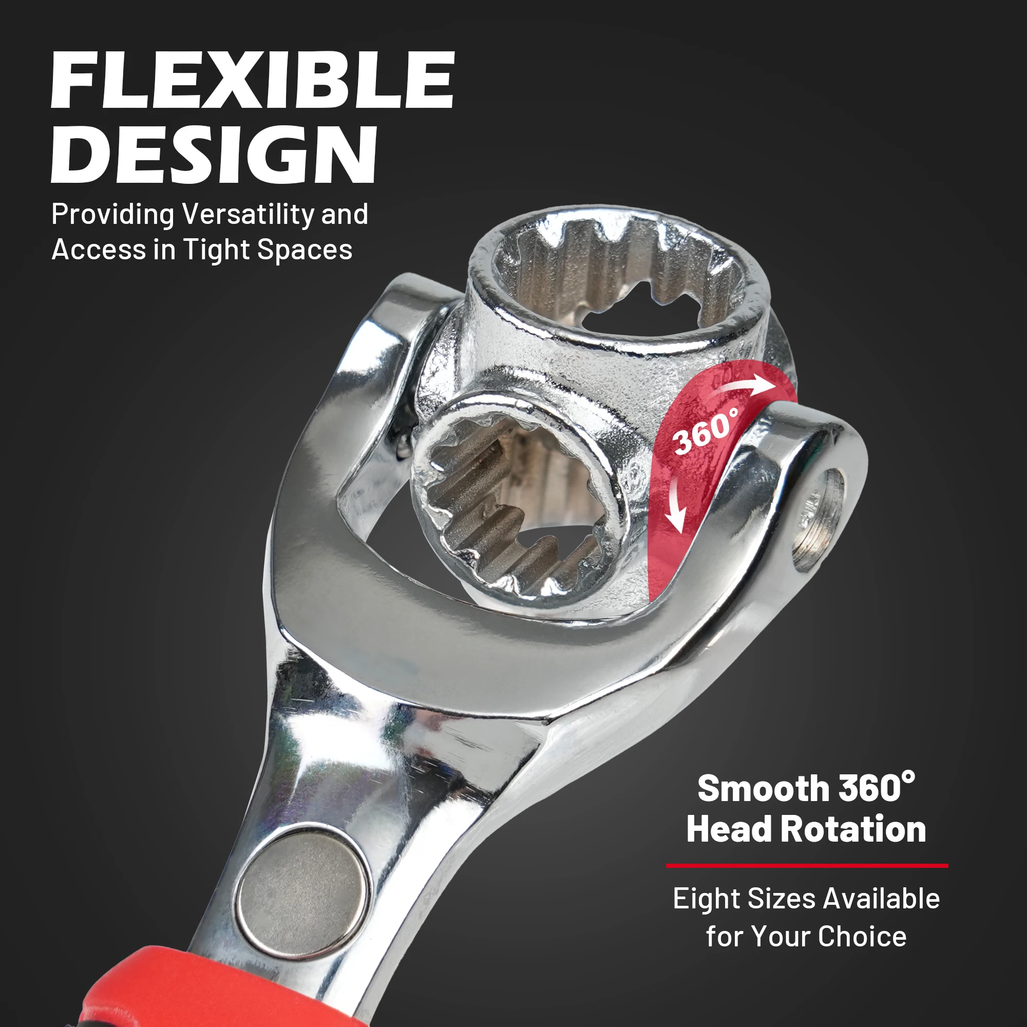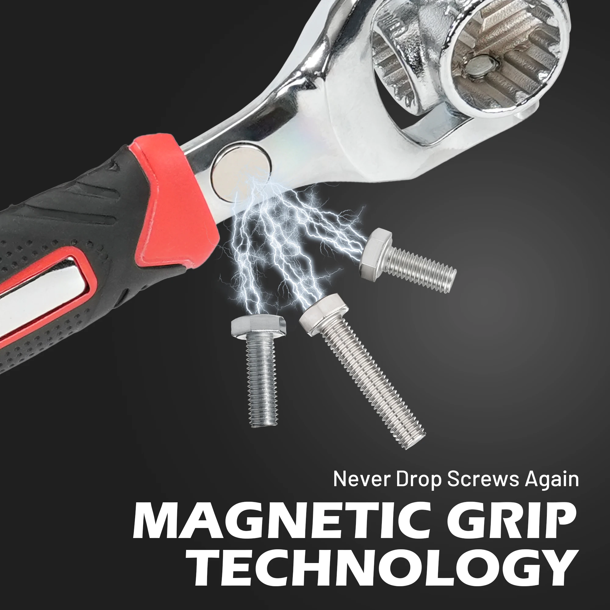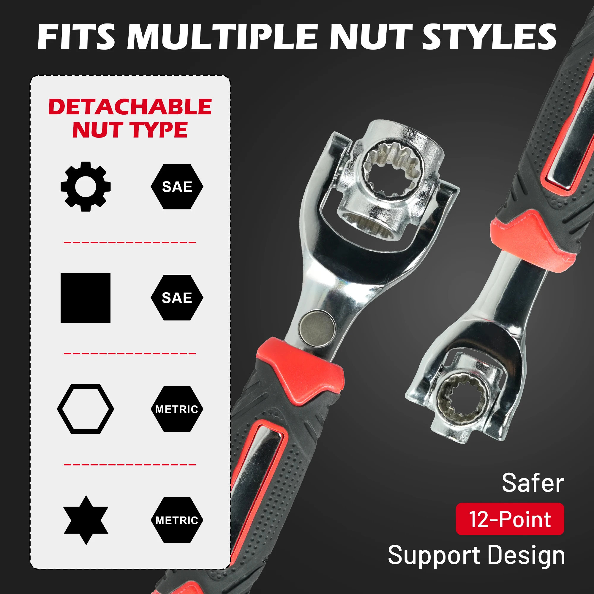 The EZARC 52-in-1 Multi-tool Socket Wrench is designed for versatility and convenience, making it an essential tool for automotive repairs, machinery maintenance, and home DIY projects. This compact tool replaces a bulky wrench set by offering compatibility with both metric and imperial bolts, covering a total of 52 sizes.