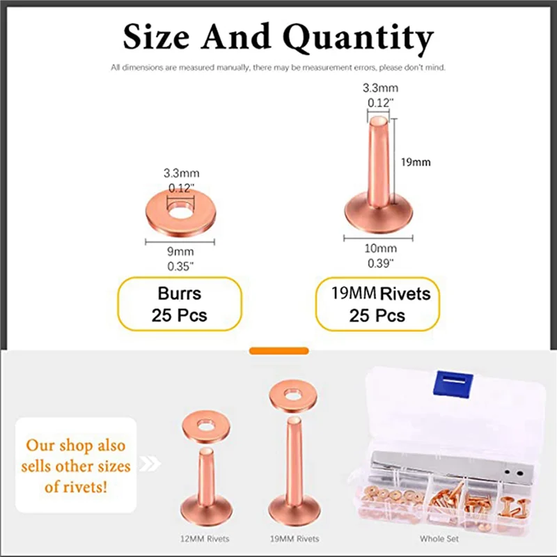 Copper Rivet Burrs Washer Set 3/4 Inch Long Leather Fastener for DIY Craft