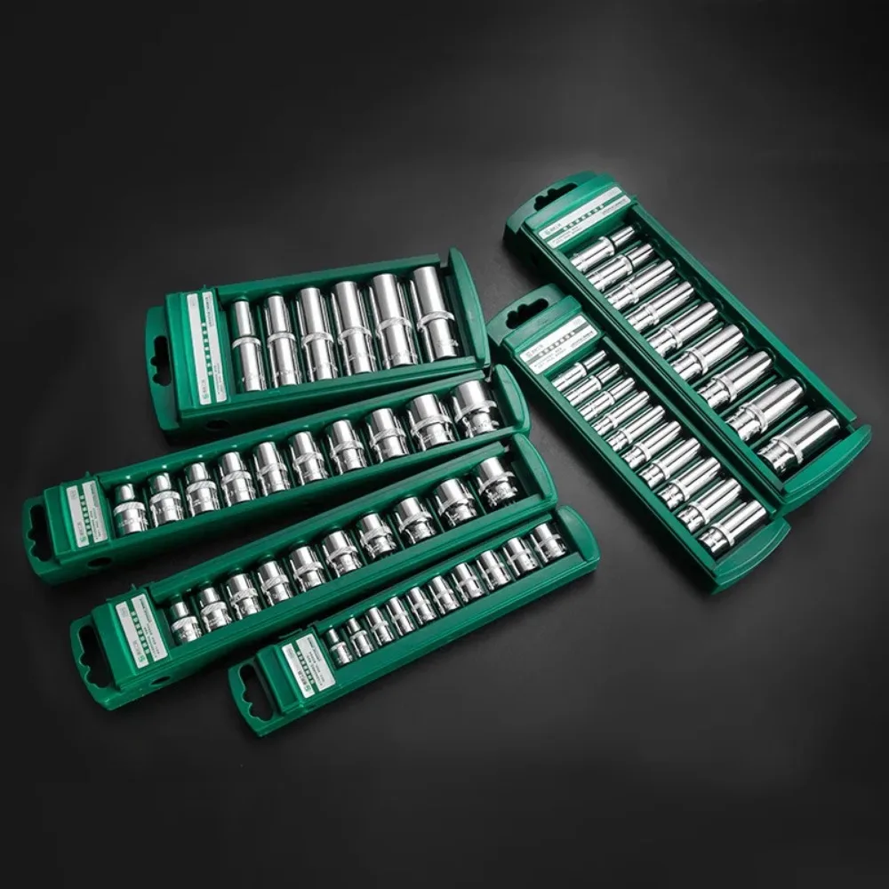 The Hex Socket Wrench Head Set is designed for use with ratchet tools, featuring a variety of socket sizes for different applications. This set includes both short and long sockets, making it versatile for various tasks.