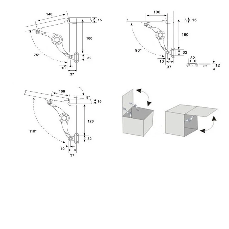 This hydraulic hinge is designed for kitchen cabinet doors, providing adjustable support for lift-up flaps. It is made from durable zinc alloy and features a polished finish, making it a reliable choice for your furniture needs.