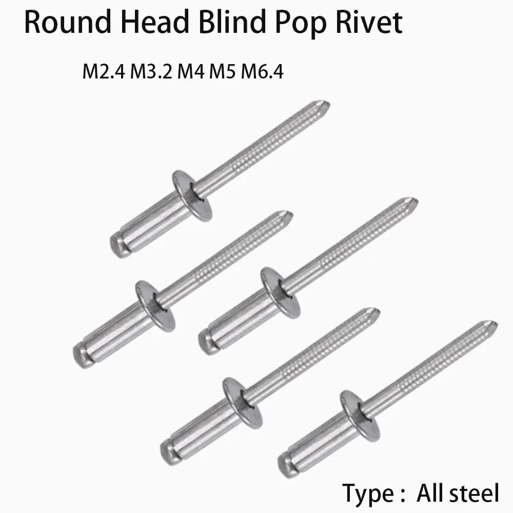 M2.4 M3.2 M4 M5 M6.4 Round Head Blind Pop Rivet 304 Stainless Steel Fasteners
