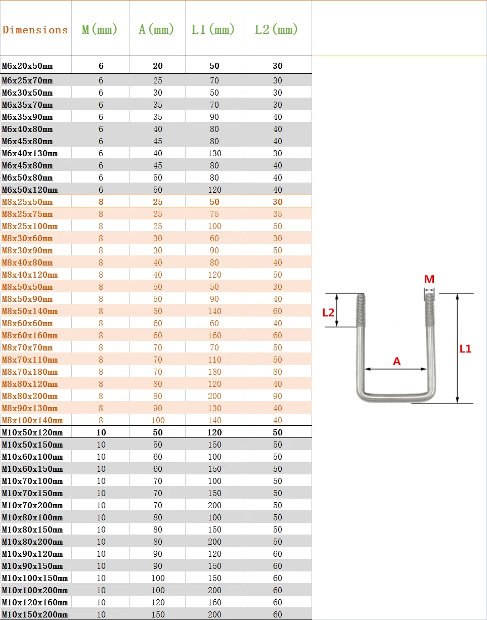 - Dimensions: Approximately M10X150X200MM, M10X100X200MM, M10X120X160MM, M10X90X150MM, M10X100X150MM, M10X80X200MM, M10X90X120MM, M10X80X100MM, M10X80X150MM, M10X70X150MM, M10X70X200MM, M10X60X150MM, M10X70X100MM, M10X50X150MM, M10X60X100MM, M8X100X140MM, M10X50X120MM, M8X80X200MM, M8X90X130MM, M8X70X180MM, M8X80X120MM, M8X70X70MM, M8X70X110MM, M8X60X60MM, M8X60X160MM, M8X50X90MM, M8X50X140MM, M8X40X120MM, M8X50X50MM, M8X30X90MM, M8X40X80MM, M8X25X100MM, M8X30X60MM, M8X25X50MM, M8X25X75MM, M6X50X80MM, M6X50X120MM, M6X45X80MM, M6X40X130MM, M6X35X90MM, M6X40X80MM, M6X30X50MM, M6X35X70MM, M6X20X50MM, M6X25X70MM.