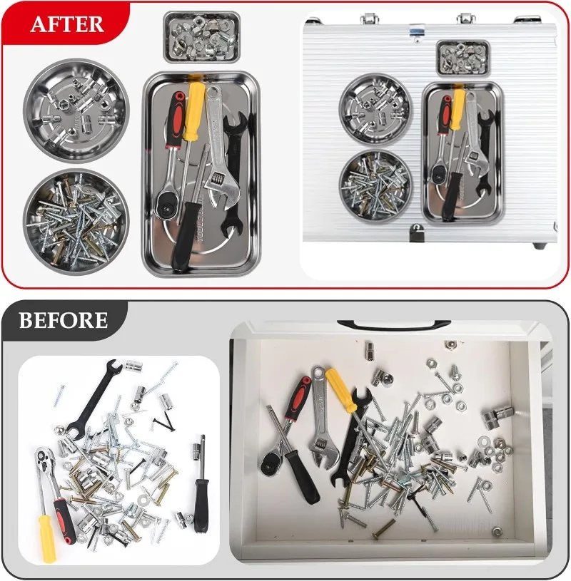 The Magnetic Tray is an essential tool organizer designed to securely hold small parts and hardware accessories. Available in various shapes and sizes, it is perfect for keeping your workspace tidy and efficient.