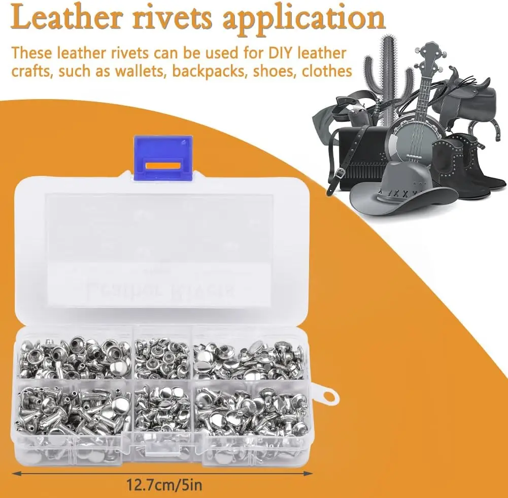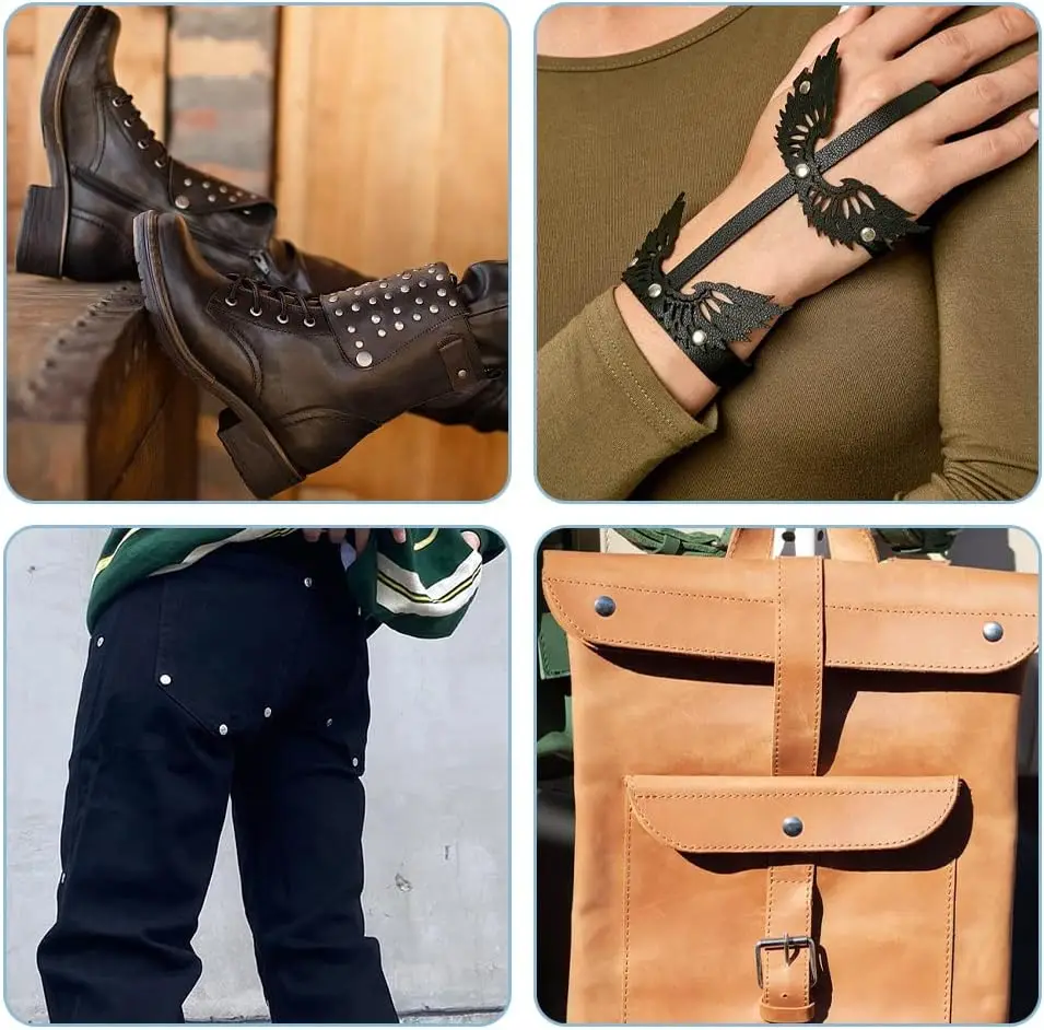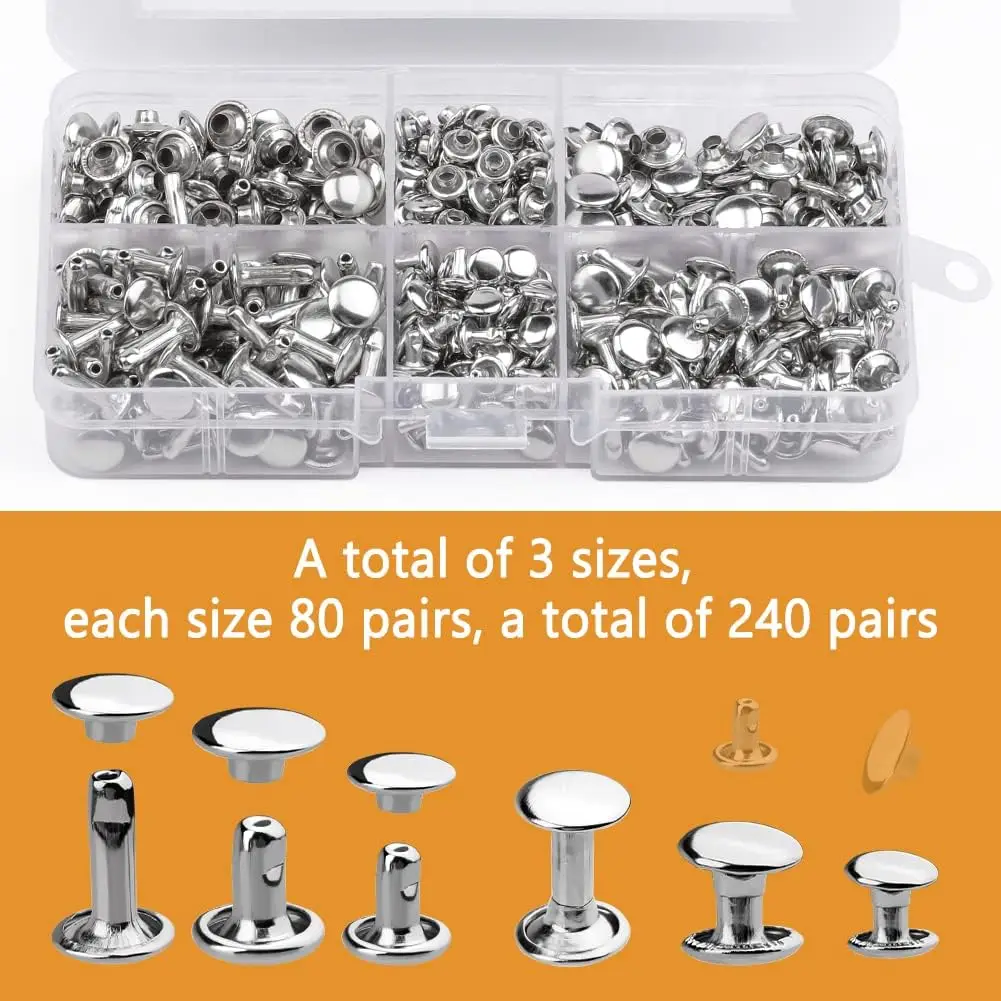MIUSIE 240 Sets Leather Rivets are perfect for your DIY leather craft projects, including bags, clothes, shoes, and belts. This set includes three sizes of double cap rivets, allowing you to choose the right fit for various thicknesses of leather and crafts.