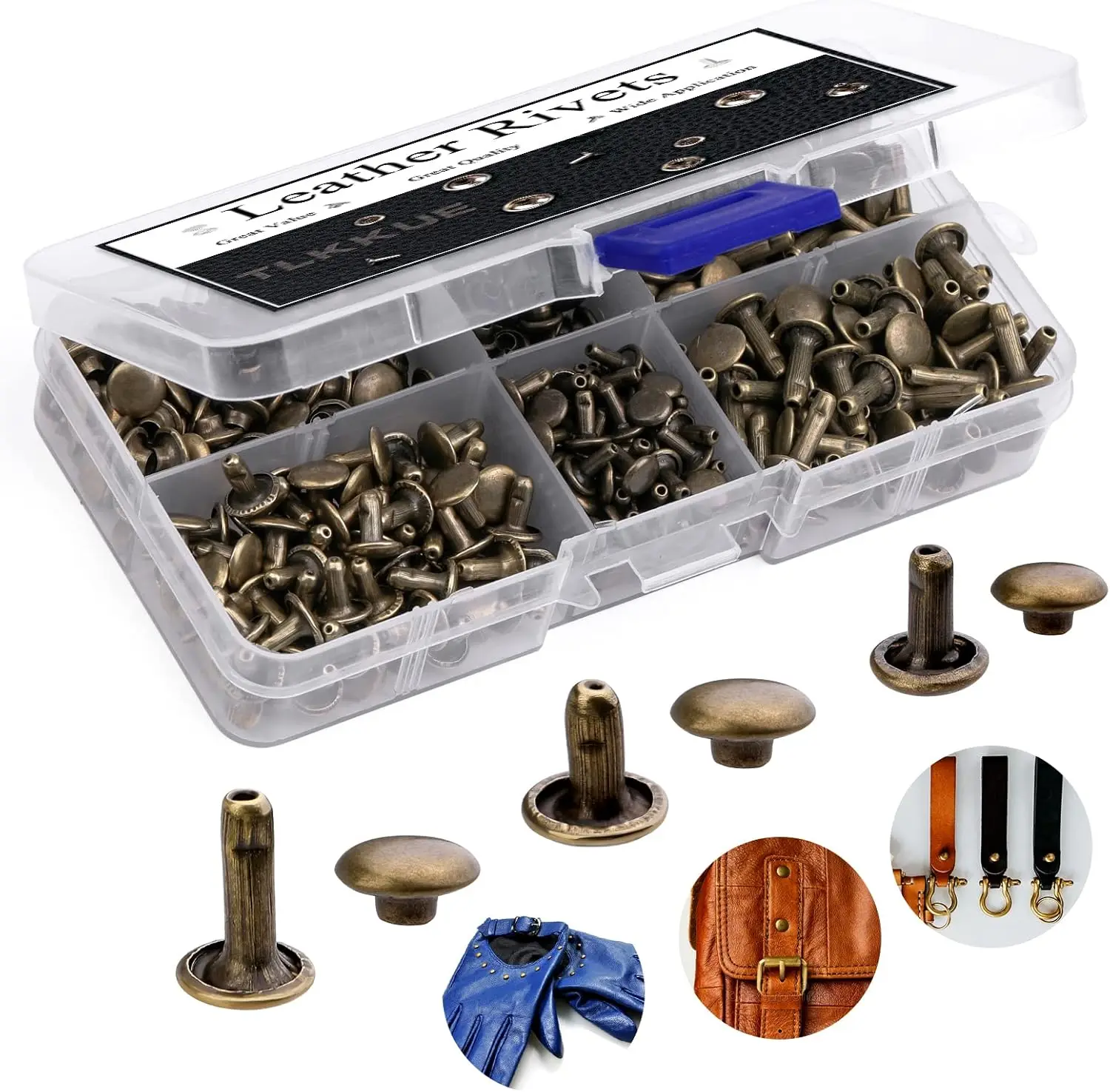- 240 sets of leather rivets in three sizes.