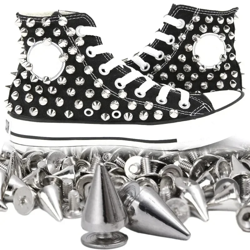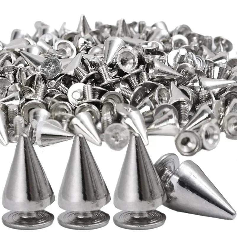 Enhance your DIY projects and clothing with these stylish cone spikes. Perfect for adding a punk flair to jackets, bags, shoes, and more, these metal studs are versatile and easy to use.