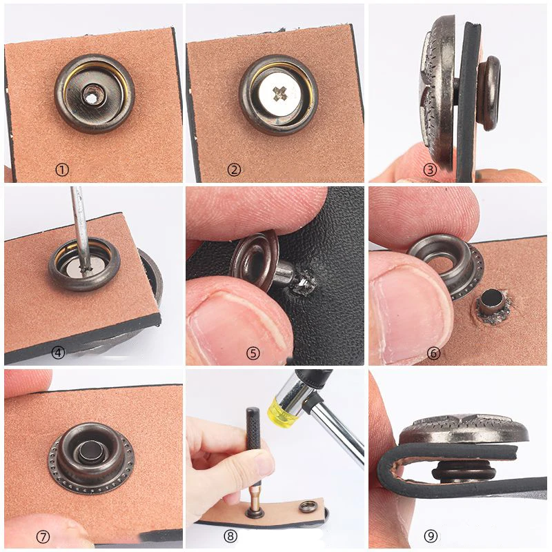 - 1 set of Silver Metal Snap Fastener Nail Rivets