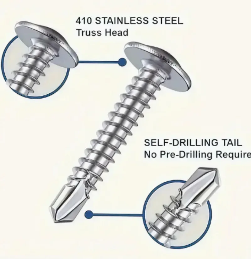 These self-tapping screws are designed for efficient fastening in wood and metal applications. Made from high-quality 410 stainless steel, they offer excellent hardness and corrosion resistance. The screws feature a round flat head and a cross slot drive type, allowing for easy installation. They are capable of drilling, tapping, and locking in one step, making them a time-saving solution for various projects.