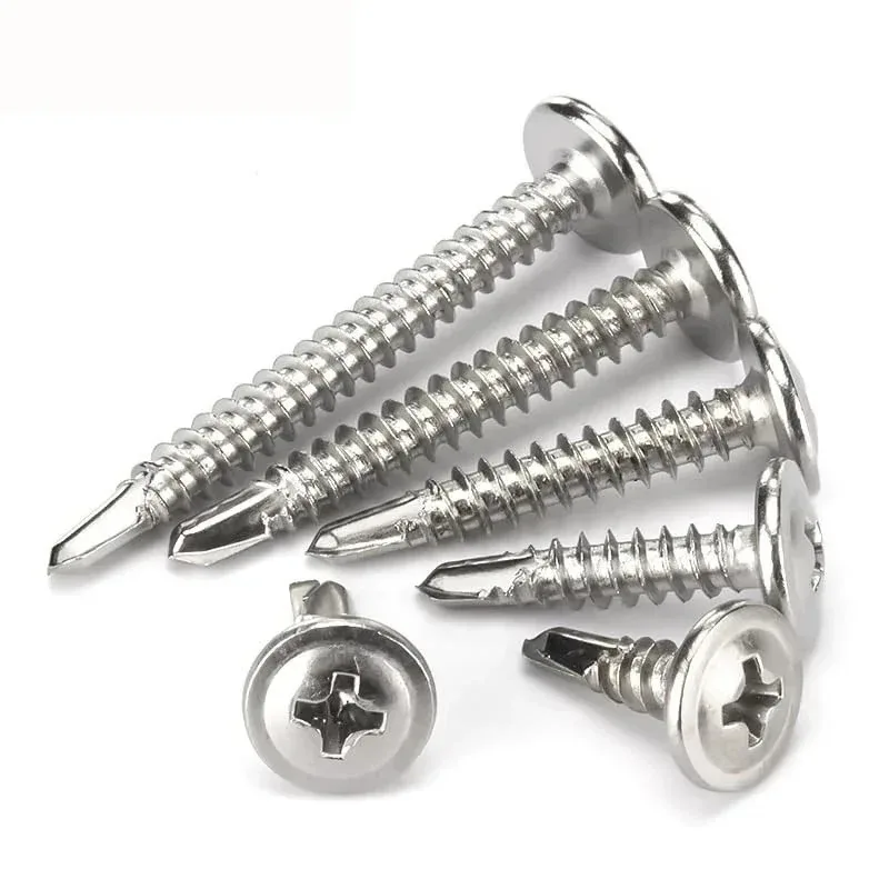 Stainless Steel Self-tapping Screws with Metal Round Washer Flat Head Cross Phillips Self Drilling Screw Fasteners for Wood Sheet
