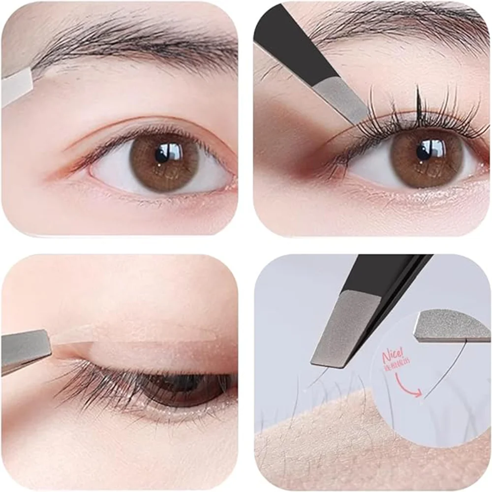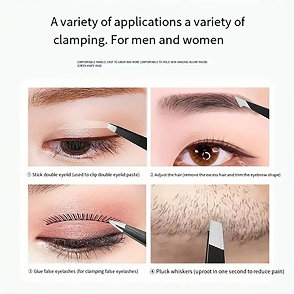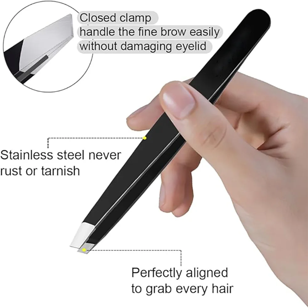Stainless steel tweezers set designed for both home and laboratory use, featuring precise anti-slip tips for easy operation and effective eyebrow plucking.