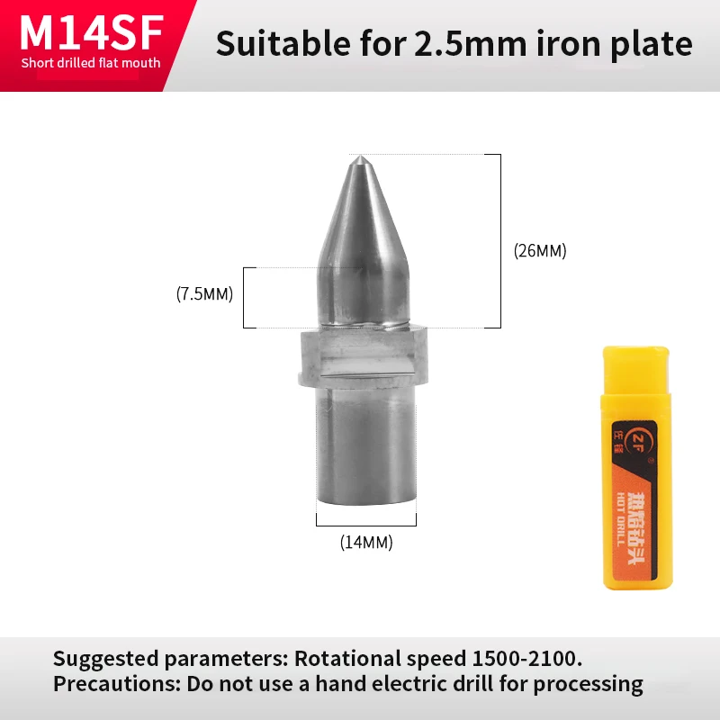 The thermal drill is designed for efficient processing of carbon steel, suitable for various sizes including M3, M4, M5, M6, M8, M10, and M12. This tool is made from high-quality tungsten carbide steel, ensuring durability and precision in metal drilling tasks.