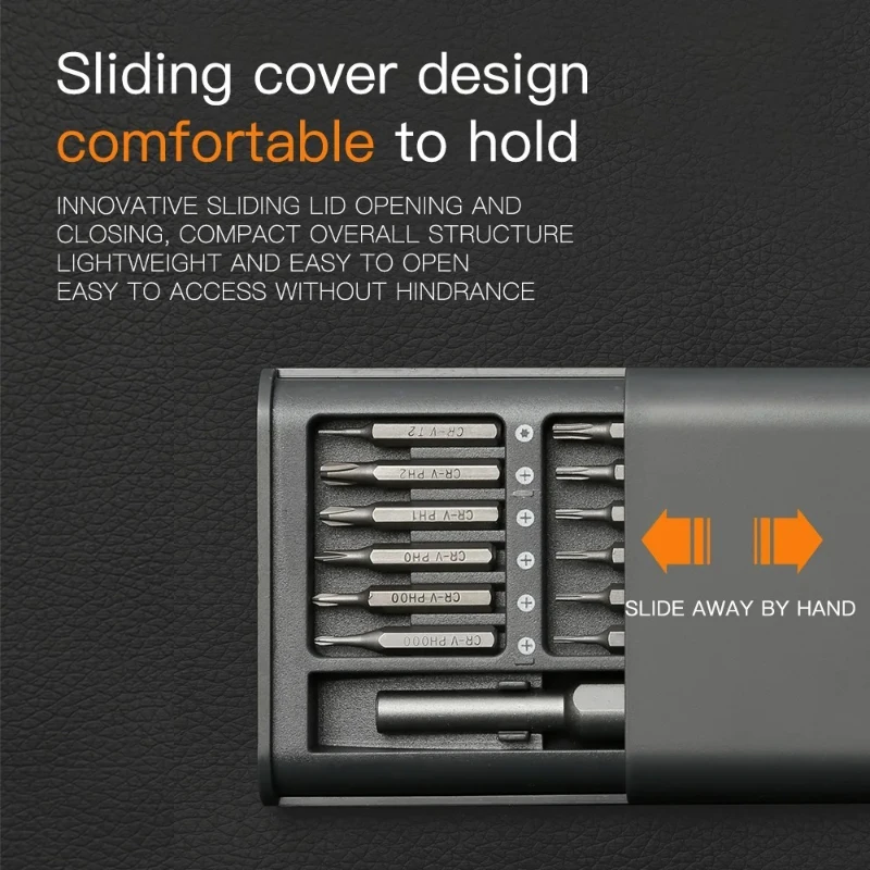 UF Tool 25-in-1 Magnetic Screwdriver Set is a precision repair kit designed for phones, computers, and various electronics. This versatile toolset includes 24 detachable steel bits, making it ideal for a wide range of repair tasks.