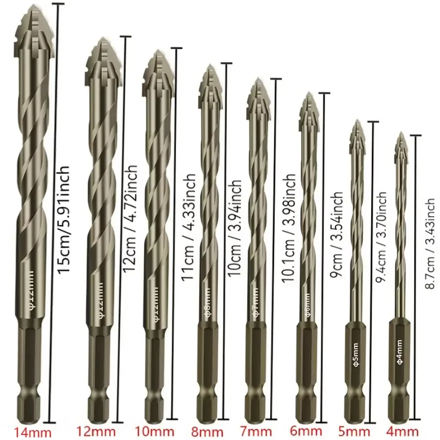 • Drill Diameter: Approximately 6mm, 8mm, 10mm, 12mm