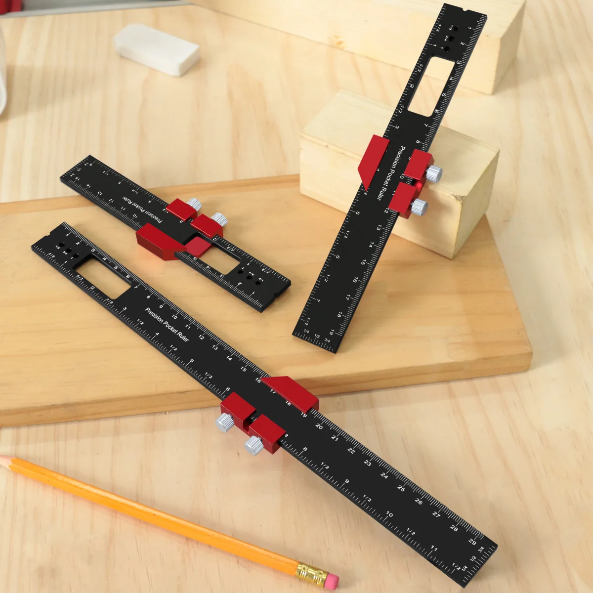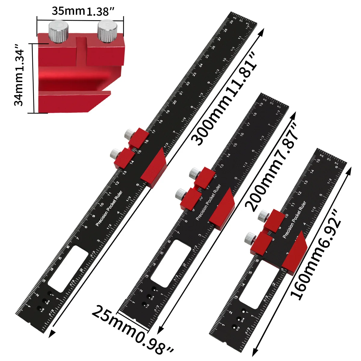The Woodworking Precision Pocket Ruler is an essential tool for any woodworking enthusiast. This aluminum slide ruler features both inch and metric measurements, making it versatile for various projects. Its T-type design allows for precise scribing and layout, while the slide stops ensure accurate measurements every time.