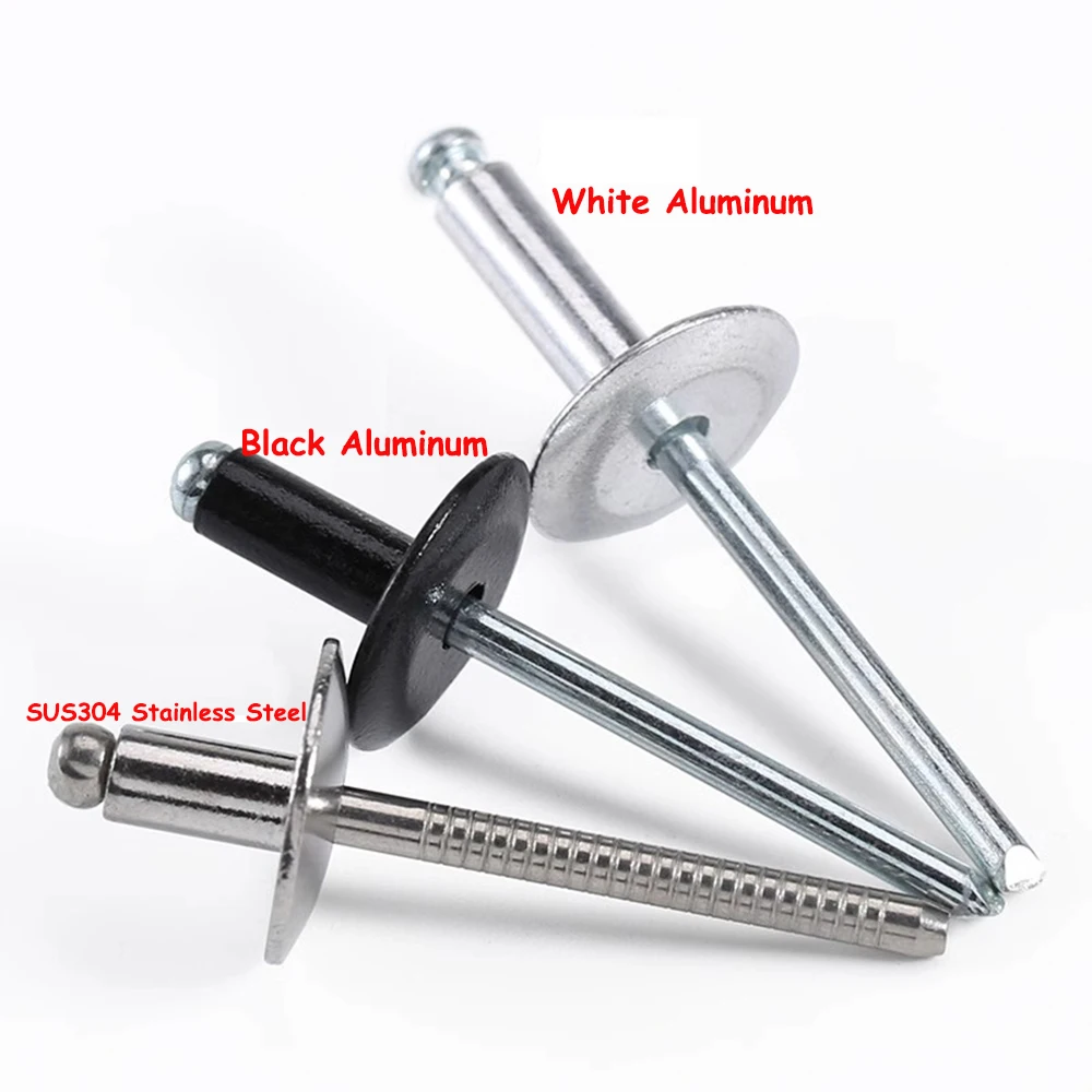 M3.2-M5 Aluminum Black SUS304 Stainless Steel Pop Open End Large Flange Cap Blind Rivet Dome Head Self-plugging Rivet